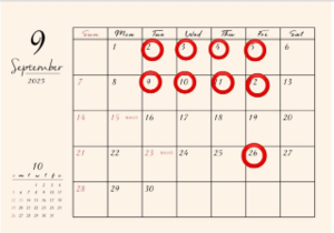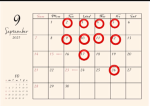 9月の予定です