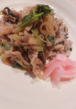 ひじき雑穀米で牛丼いただきました(●´ω`●)
