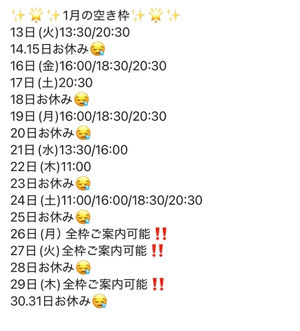 今月の空き枠情報です❕