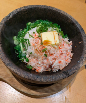 一生懸命食べる子供達見ながらホッコリして、、酒豪の義姉と乾杯しつつ、、蟹フェアということで石焼き蟹??ビピンパみたい。蟹炒飯いただきましたimg
