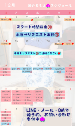 当日お部屋でご案内中は返信できないため、私からのレスポンスが悪い場合は、お店へお電話をお願いいたします??♀?