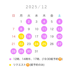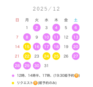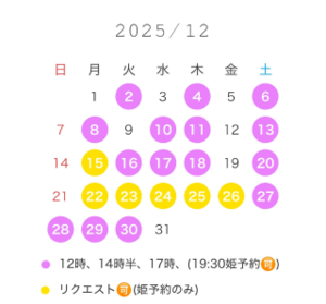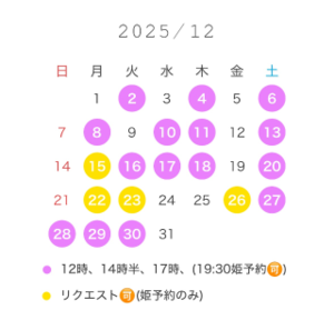 直前のお誘いだと承れない場合がございます。 ?