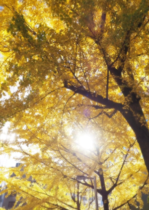 陽に透ける鮮やかな銀杏、