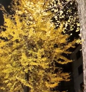 夜に散る儚い銀杏、