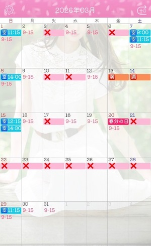 9-15と書いてある日が出勤日です?