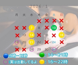 スケジュールはこちら?https://freecalend.com/open/mem266181_date202601気になる日をタップしていただくと、詳細がポップアップいたします