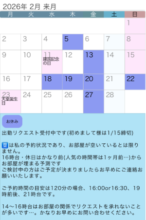 そろそろ2月の出勤リクエストをいただきたく