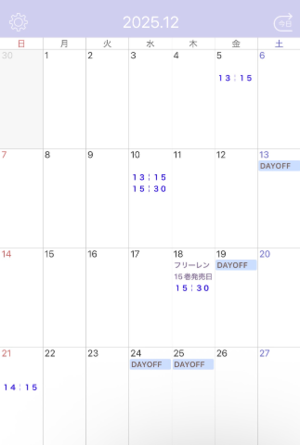 来月の空席です?