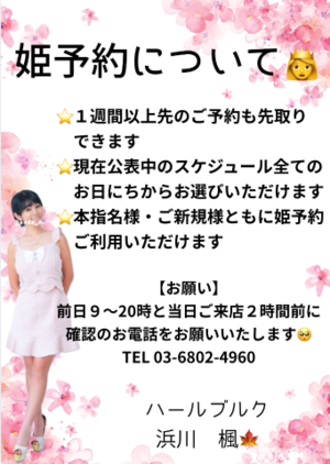 ご新規さまからの姫予約も再スタートしました\(^o^)/