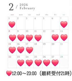 ?2/17(火) 12:00/14:00/16:00/18:30/20:30