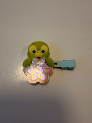 姿見には亀のピンを頭につけた私。