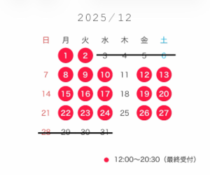 12月は12時〜20時30分(最終受付)で出勤します?