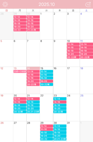 【10月の出勤予定】
