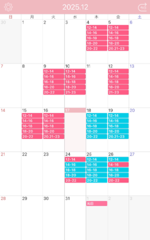 【12月の出勤予定】