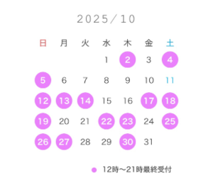 ちなみに週明け29日が9月ラスト出勤ですがまだまだ空き多数の状況です?