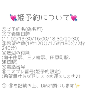 ♡当日の姫予約はご予約時間の3時間前までにお願いします♀️