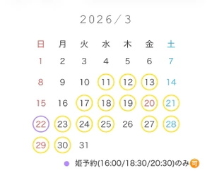 22日の姫のみは18:30と20:30可能です‍♀️