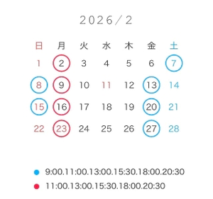 2日は空き少ないですが、他の日は空いてるお時間たくさんあるので是非