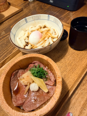 ご飯はくたくたうどんと松阪牛??