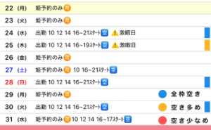 姫予約状況はこちら??