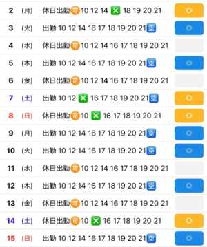 6日は休日出勤リクエストが