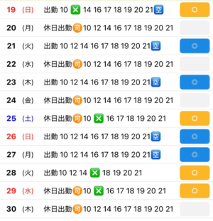 出勤日も休日出勤リクエストも