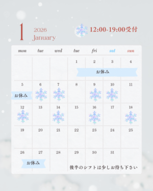 1月のシフトも後半決まったらまた載せますね?
