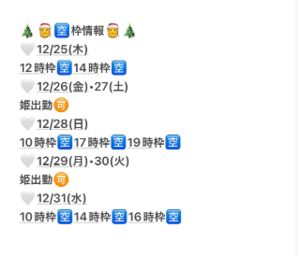 出勤日:?10時/12時/14時/16(17)時/19(18)時/21(20)時枠受付?