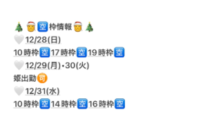 出勤日:?10時/12時/14時/16(17)時/19(18)時/21(20)時枠受付?