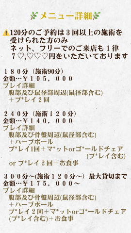 ??90分コースはご予約お取りしておりません