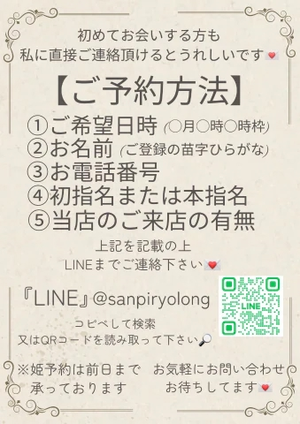 お馴染み様の場合は出勤日以外のリクエスも可能です(出勤日ではない場合は最低2枠〜ご相談下さい)