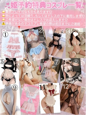 コスプレも全て自宅で保管しているため、ご希望のものが無い可能性の方が高いのですが、持ち合わせのもので対応できる場合は、コスプレの対応も可能です