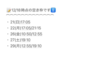 空き枠も随時更新中です