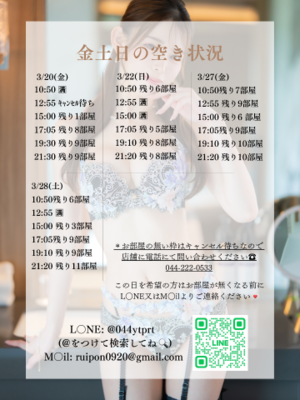 3/20(金)... 12:55?/15:00~残り1部屋