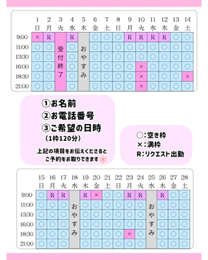 最近ご希望の日程を取れることが少なくなってきてしまってるので