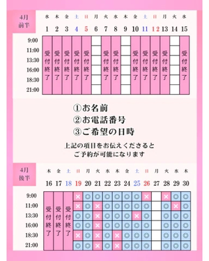 早めの予約お待ちしてます♡♡