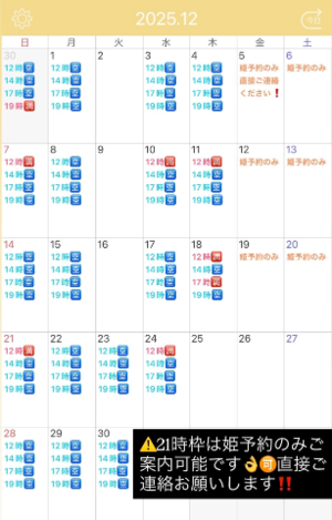 ??21時枠は姫予約のみご案内可能です???♀?