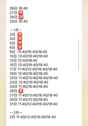 今日以降の空き枠状況を更新しましたので、