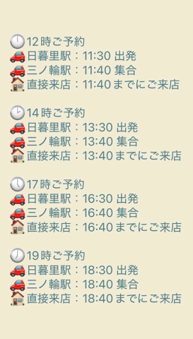 直前のご予約が埋まりやすい日もございますので、ご予定がお決まりの方は、少し早めのご予約をおすすめいたします?