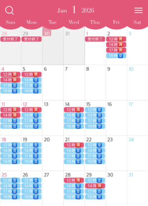 人気のお正月休み中の空き枠