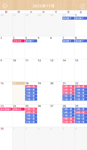 直近のご予約?日時のご案内です?