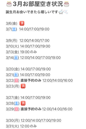 復帰後の3月のご予約