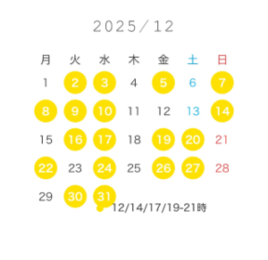 1月のシフトは今月半ばまでに確定できればと思ってるので、リクエストあればお早めに?