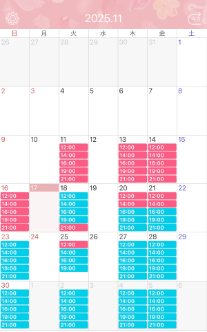 12時、14時、16時(17時)、19時、21時
