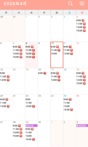 ☆4月の出勤カレンダー☆