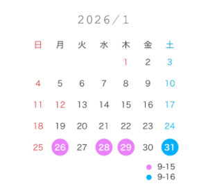 1月の残りの出勤は28日(水)、29日(木)、31日(土)の3日間です!