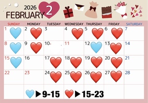2/1 ?2/2(月)18:00-21:00 ※ 13:00〜ご相談可2/4(火)16:50-   18:30- 2/5(木)18:20-23:00 ※ 13:00〜ご相談可2/6(金)16:40- 20:00 ※ 13:00〜ご相談可2/8(日) 11:40-15:002/9(月)16:00-23:00 ※ 13:00〜ご相談可2/12(木) 9:00-   12:40-2/13(金)15:00-23:00 2/15(日)9:00-12:00  遅番の日の13:00からも予約可能な日多いです??上記時間以外でもご相談いただけたらうれしいです! いちか