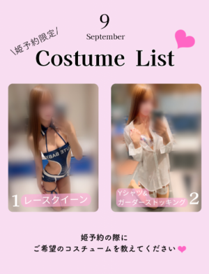 ?コスプレ(月限定よりお選びください。ない場合はお店の制服、イベント中はイベント衣装)