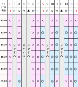 現在の空き状況です