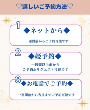 お店にお電話でご予約いただけますと